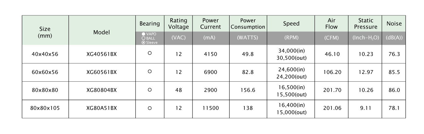 AI風(fēng)扇系列產(chǎn)品規(guī)格
