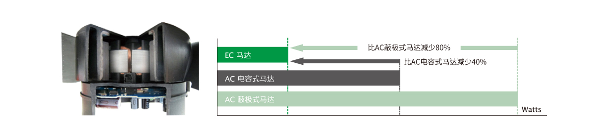 在交流風扇應用中,暖通空調、冷凍冷藏、工控等設備均需透過各種控制達到最佳效能與節能的目的,SUNON ECO-EC風扇依應用系統的需求提供不同的控制機制如內建電子回路傳送訊號至客戶系統控制端,隨時偵測散熱風扇的運轉情況;數字控制(PWM)調速設計,實時調整設備使用當下的最佳散熱狀態,有效減少不必要的能源消耗。