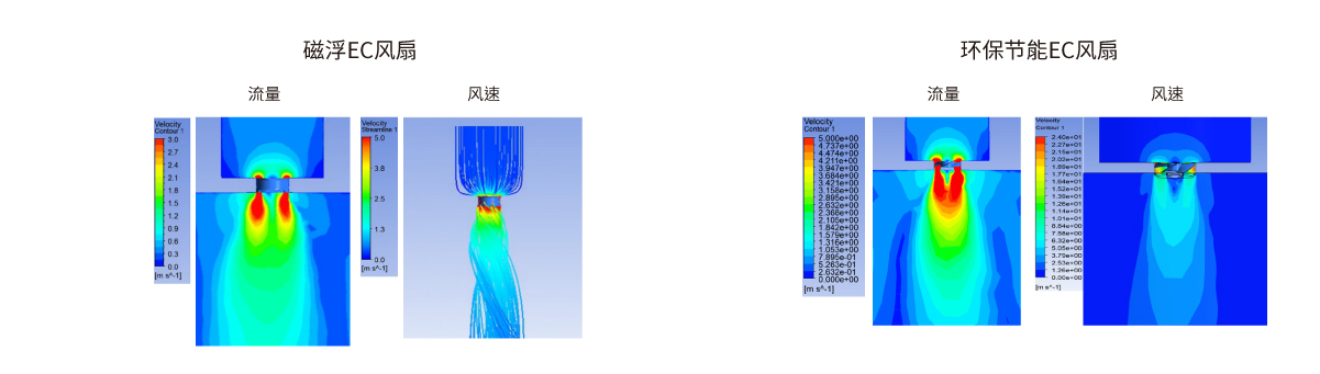 SUNON EC風扇透過專業的扇葉優化設計軟件,仿真優化扇葉的曲度和面積,設計各種不同風量與風流的產品。新一代EC 風扇更更大的扇葉曲度設計,提供更集中的風流,也讓氣流吹得更遠,達到風扇整體的散熱效能升級。